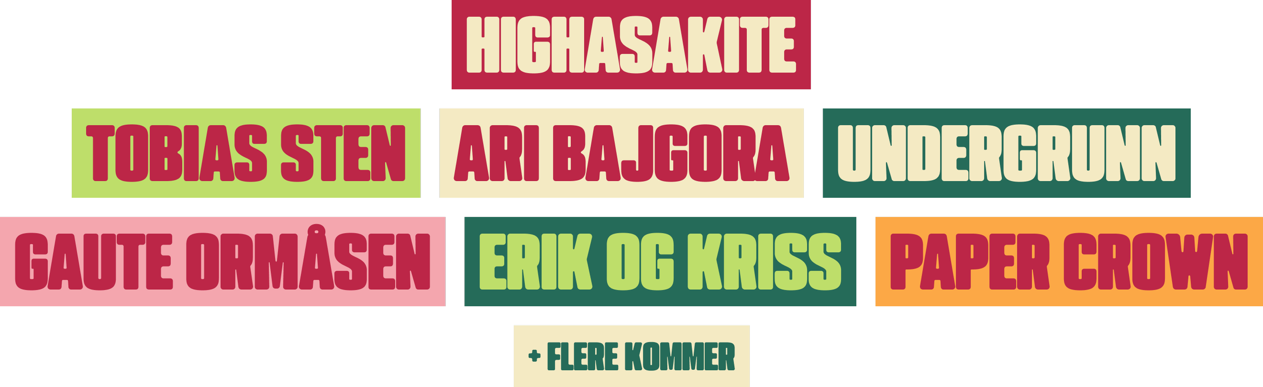 Kjøp billetter! Featured HIGHASAKITE TOBIAS STEN ARI BAJGORA UNDERGRUNN GAUTE ORMÅSEN ERIK OG KRISS PAPER CROWN ARTISTER