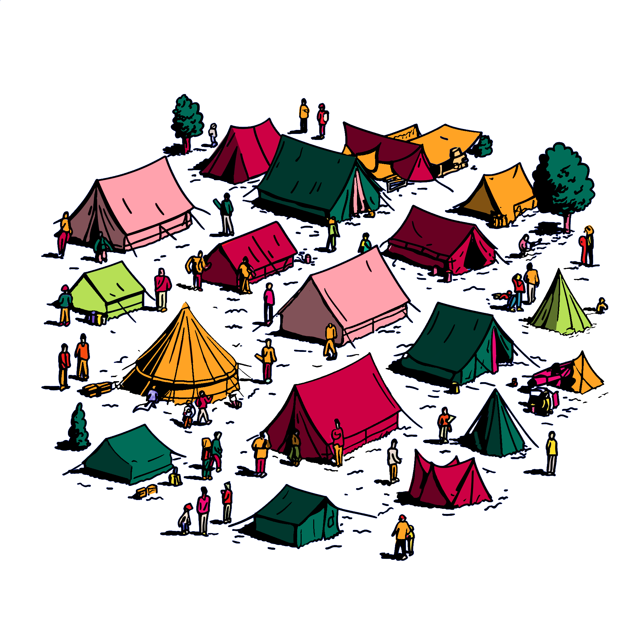 Når du ankommer campen, får du tildelt en plass på ca. 5 × 5 meter. Plassen gjelder per telt, ikke per person.